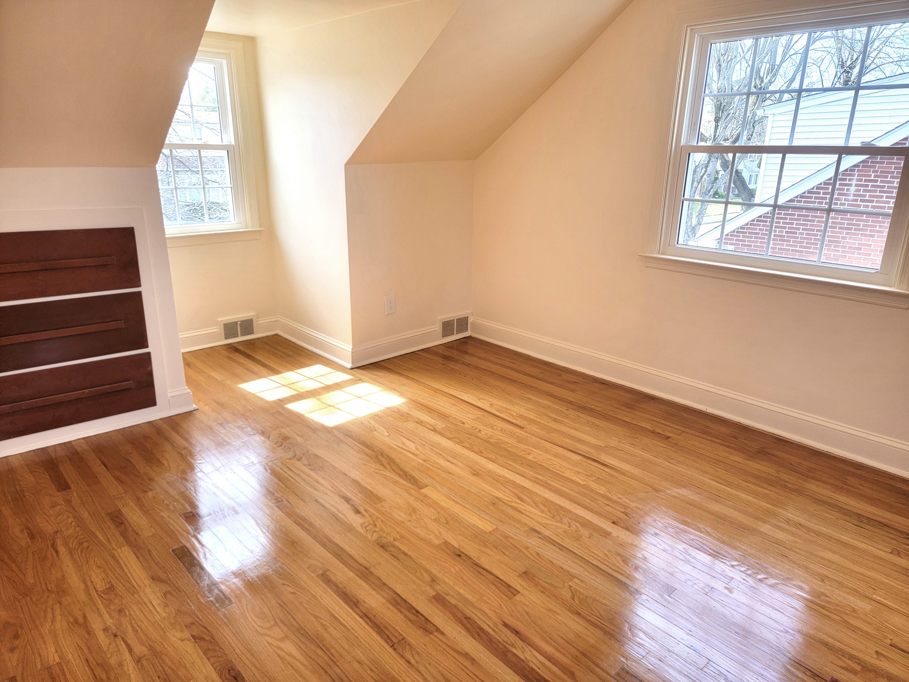 This space was fully revitalized with fresh paint, repaired surfaces, and refinished hardwood flooring that brings out a warm, natural glow. The result is a clean, inviting room ready for new use.