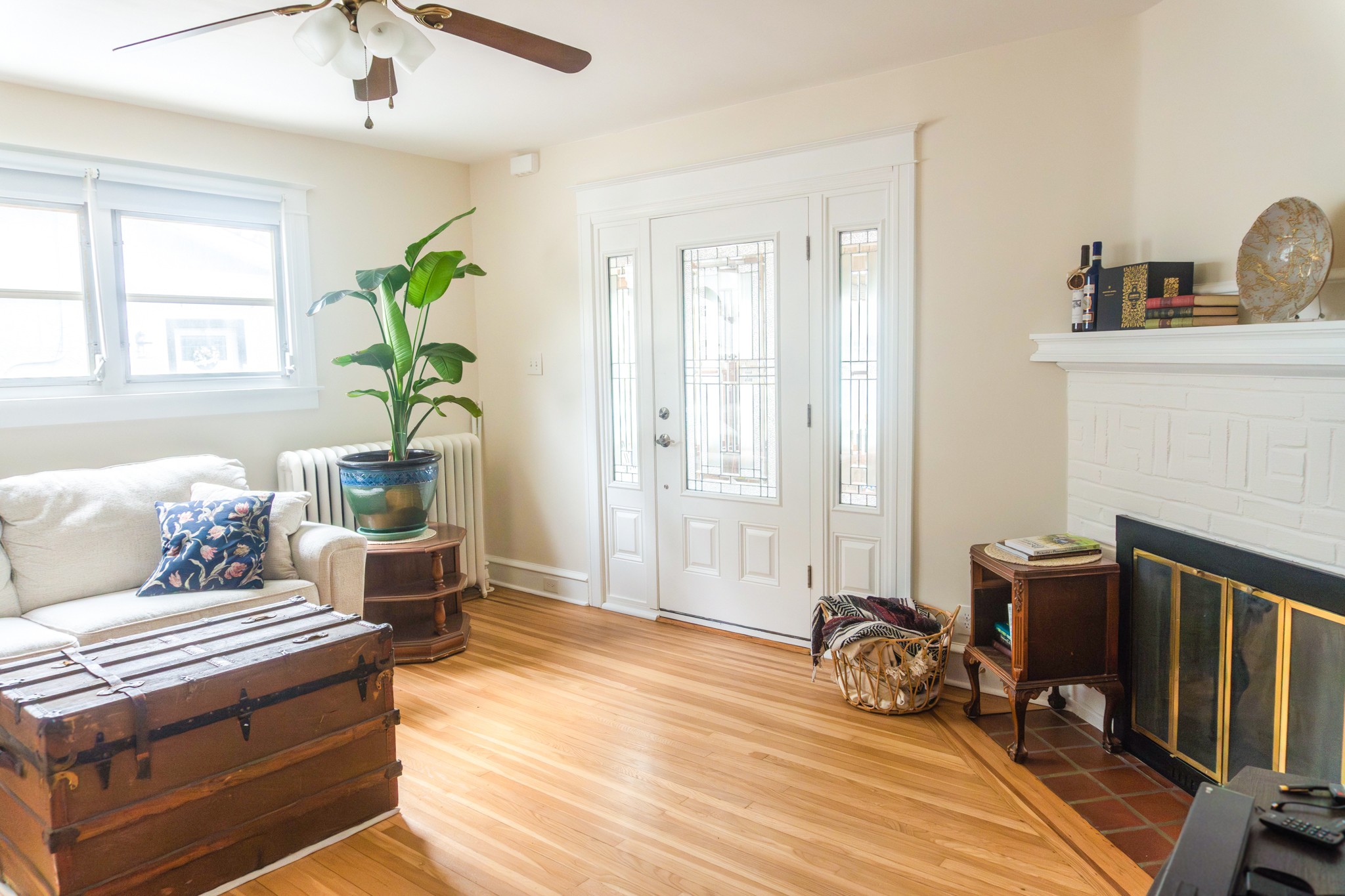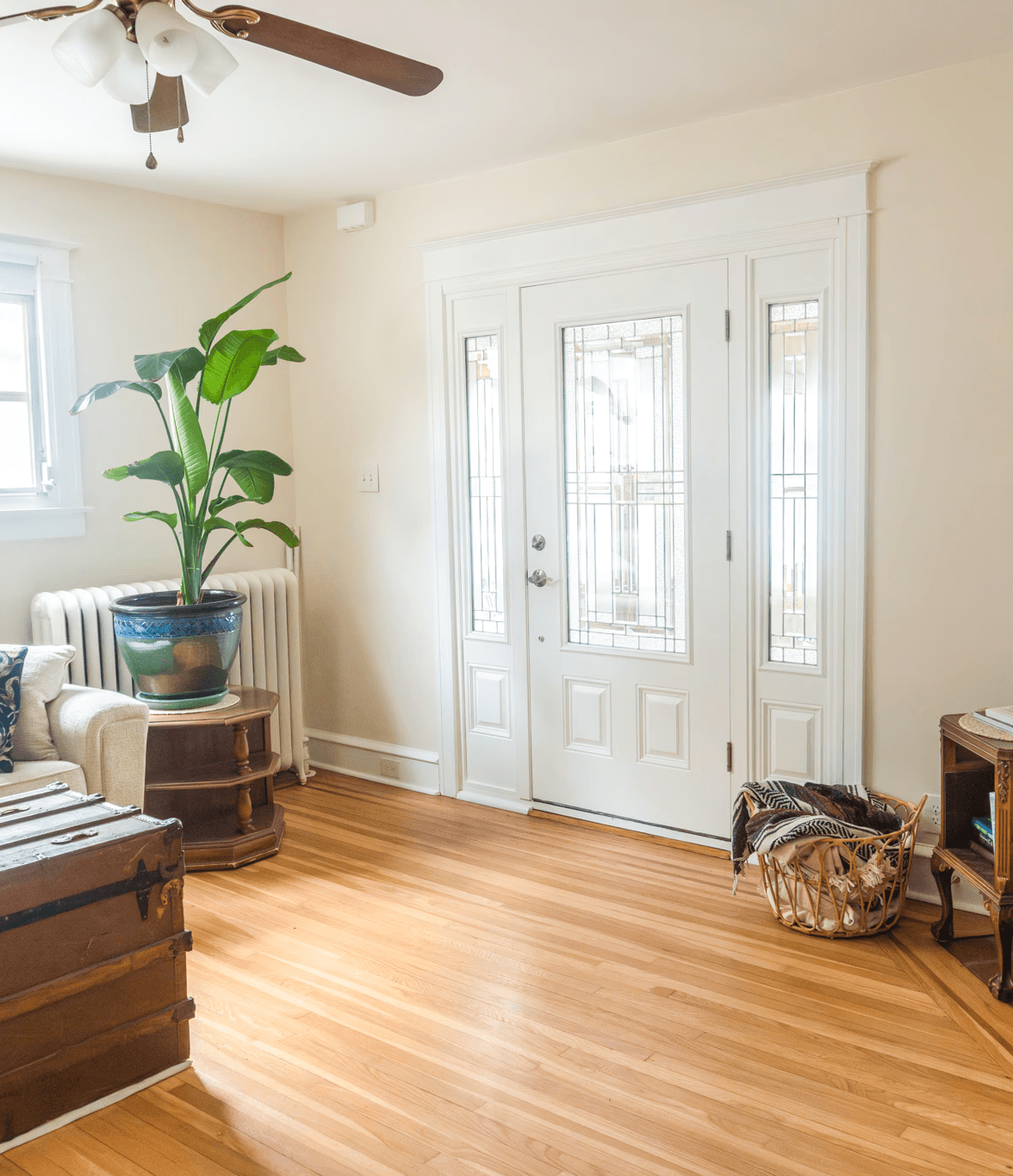 This living room was brightened with refreshed walls, crisp trim, and polished hardwood floors—creating a warm, inviting space with a clean, timeless finish.